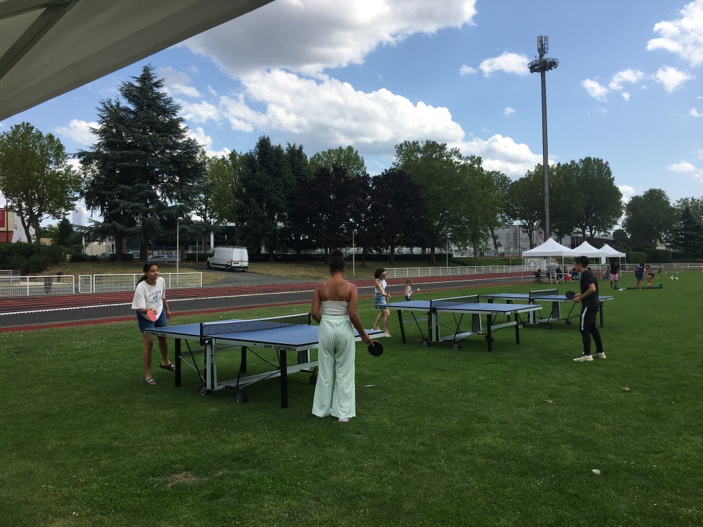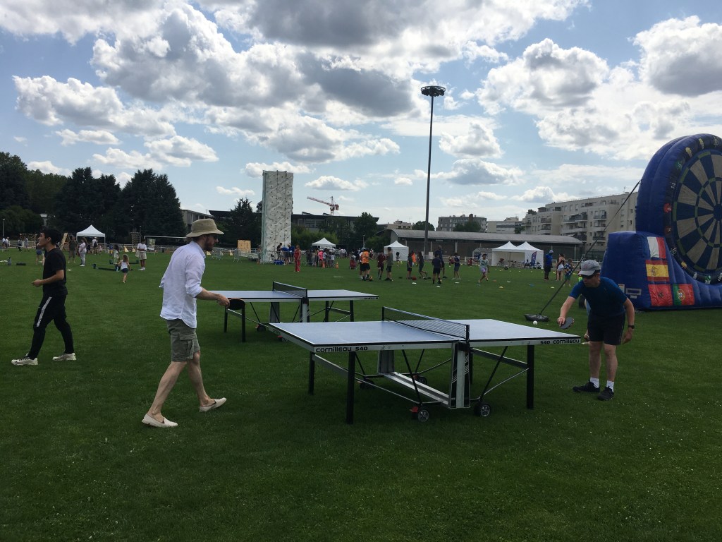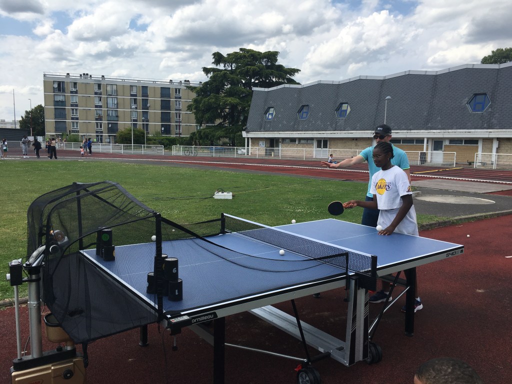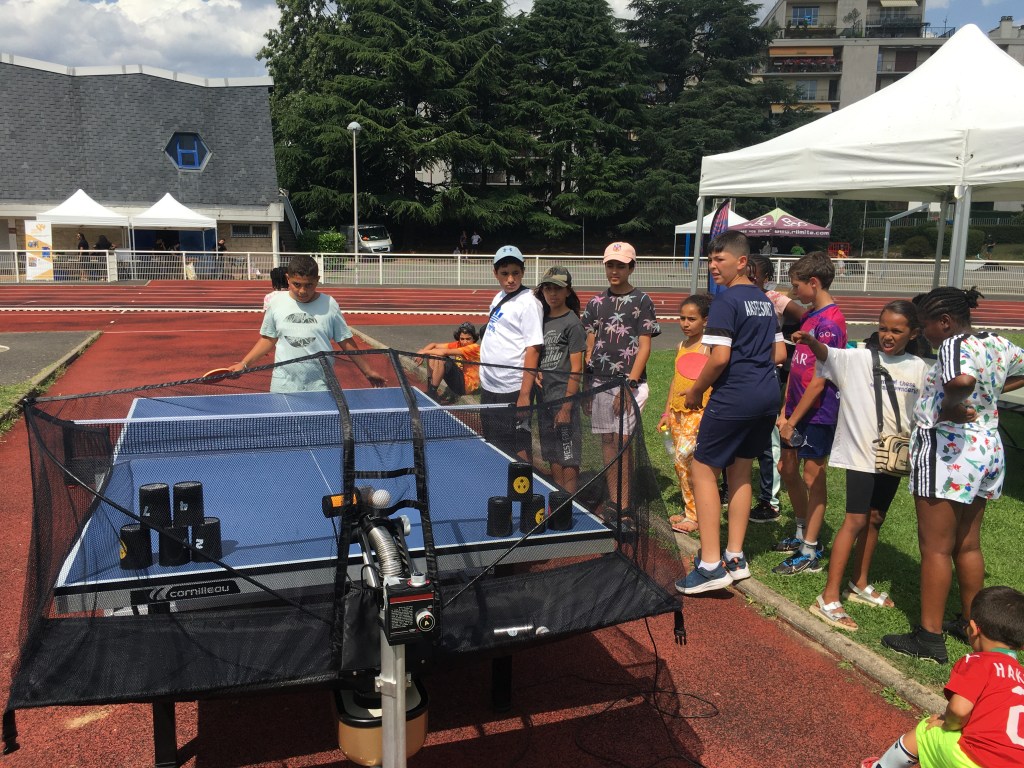 A cette occasion nous avions proposé du Ping en jeu libre sur 5 tables et un jeu de chamboule-tout couplé au robot. Très gros succès de ces deux activités car de 14h00 à 21h00, les 5 tables ont été quasiment toutes occupées sans discontinuer et le jeu de chamboule-tout a été sollicité en permanence !